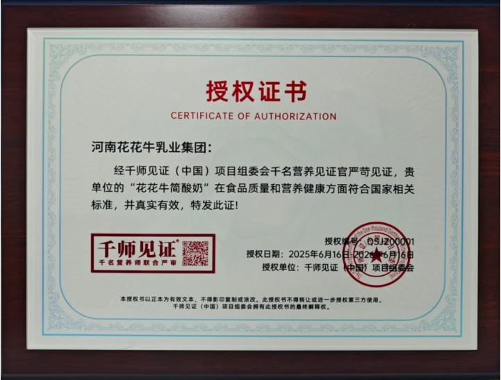 隨后雙方舉行授牌儀式。據(jù)了解,河南花花牛乳業(yè)集團(tuán)是*通過(guò)千師見(jiàn)證(中國(guó))項(xiàng)目組委會(huì)“千名營(yíng)養(yǎng)師”認(rèn)證的企業(yè)。此次授牌含金量相當(dāng)之高,標(biāo)志著花花牛在質(zhì)量管控、技術(shù)創(chuàng)新、產(chǎn)品健康方面,為區(qū)域乳業(yè)高質(zhì)量發(fā)展樹(shù)立了新范式。